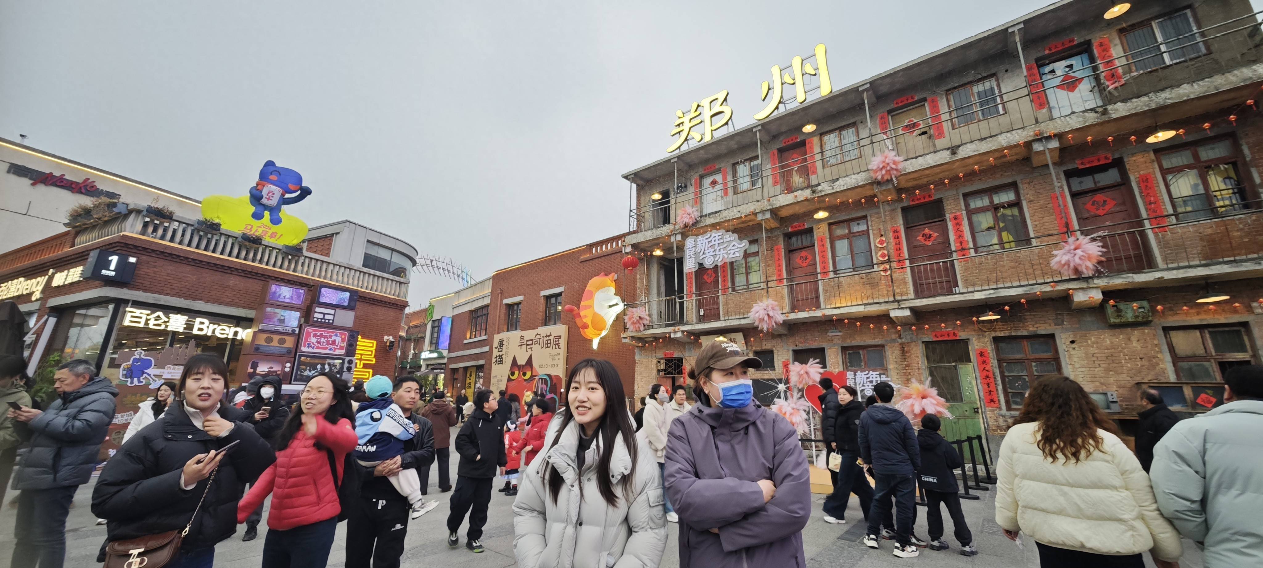 “我们从东区过来的,特意选了公共交通,怕不好停车。”市民王阿姨和几位老姐妹盛装打扮,穿着喜庆的红毛衣在灯组前合影,“退休了,就爱凑这份热闹。你看这‘龙马精神’的灯,多气派!在城墙根儿下过节,才觉得是真正在郑州过了年 ”。